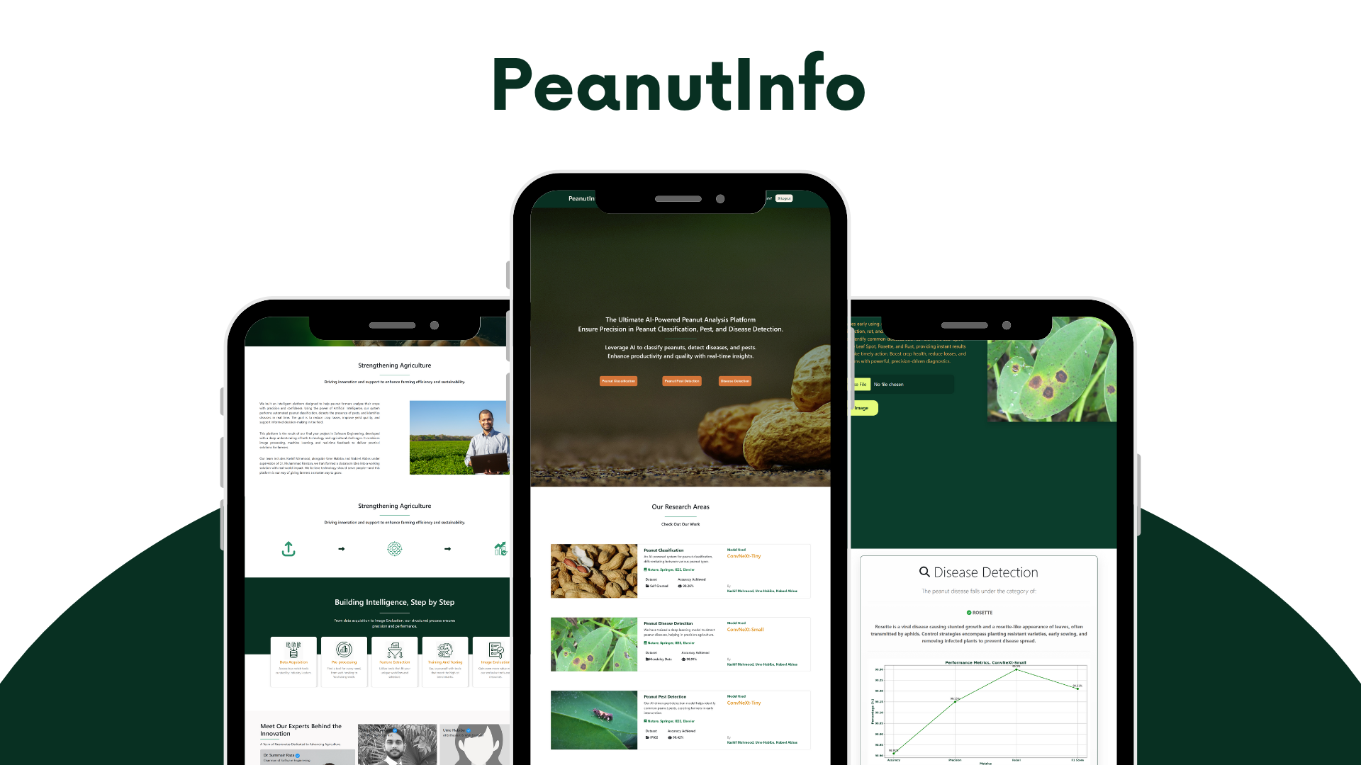 PeanutInfo is a deep learning system that accurately classifies peanut varieties, pests, and diseases for smarter crop management through a user-friendly web interface...